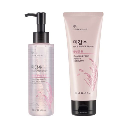 [The Face Shop] Rice Water Bright Cleansing Oil + Foam Set Bundle with Oil Blotting Paper - Korean Face Cleanser Wash for Pores Sensitive Oily Acne Skin