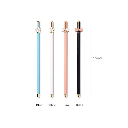 -. Feature : Pen Size:17.2cm/6.8inch;Candy Color:White,Blue,Pink,Black; / Made of high quality metal material,with baking varnish surfece; / Macaron color pen design,with flower and bow on top; / Replaceable refill, recycling, eco-friendly,black ink,writing smooth,easy to carry; / Perfect gift for children,students,classmates,school, home or office use,business,holiday,birthday,decoration,kid toy,etc.