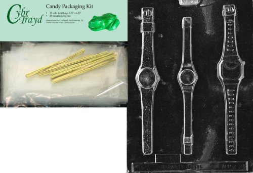 Cybrtrayd Wrist Watch Miscellaneous Chocolate Candy Mold with Packaging Bundle of 25 Cello Bags, 25 Gold Twist Ties and Chocolate Molding Instructions