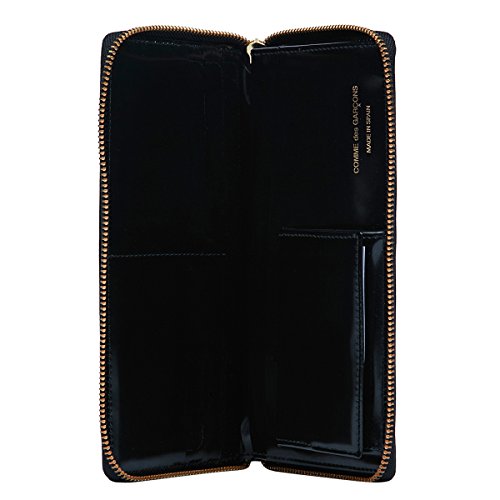 Product Description NEW- S/S17. Polished leather wallet in black. Dot patten embossed throughout. Zip-around closure. Card slots. Coin pocket with press-stud closure. Note compartments at wallet interior. Logo stamp in gold at interior. Tonal stitching. Made in Spain. Color: black 0