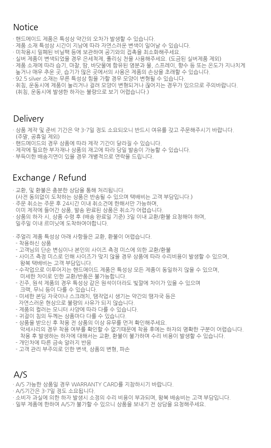 담수진주 특성상 모양이나 빛깔에 조금씩 차이가 있을 수 있으며, 미세한 스크래치로 인한 교환,환불은 불가합니다.