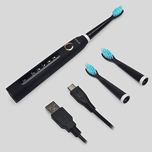 LONG BATTERY LIFE supported by USB inductive charging, safe and easy, auto shut off after full charge, compatible with any power source. Electric toothbrush convenient to use at home or travel. Low battery reminding.