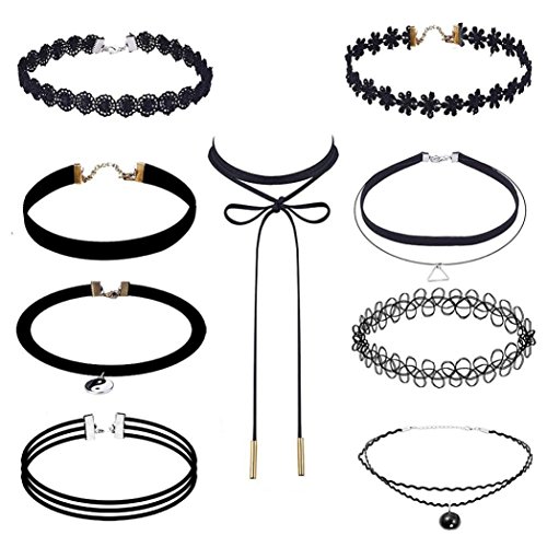 SILYHEART 9PCS Women Girls Fashion Elastic Choker Classic Necklace Set Tattoo Lace Adjustable Collars