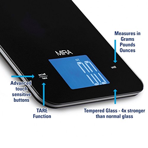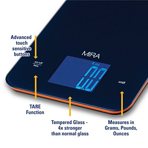 -. Title : MIRA Digital Kitchen Scale in Tempered Glass, 11-Pound
