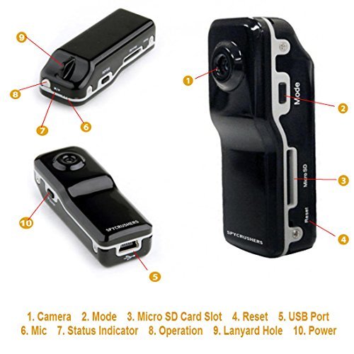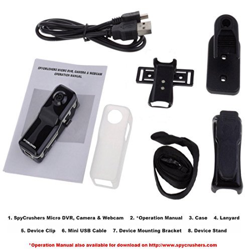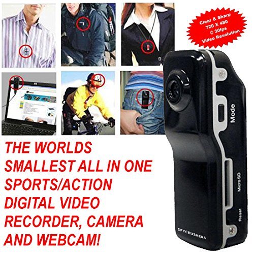 Hands free helmet mounting bracket, wearable clip and lanyard included. The only 3-n-1 digital video recorder, camera & webcam that fits in the palm of your hand. Simple activation and operation. Easy plug-and-play functionality for file transfers. 90 Minutes of continuous recording. Supports up to 32GB SD card (card not included). 6 Hours of standby time. Take unlimited photos. Use as a PC webcam. 6 Piece accessory bundle included. The SpyCrushers micro digital video, camera & webcam is the ideal multifunctional device to use for action sports, extreme athletics, surveillance, online communication, photo taking, RC planes, RC helicopters & cars and much more. Use the included helmet mounting bracket, triple threaded lanyard, desktop stand or harness clip attachment accessory to give yourself the freedom to enjoy your device for hours hands free. Click the ''add to cart'' button and buy now.