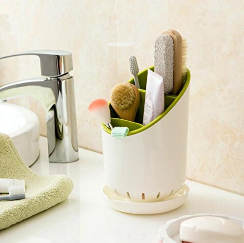 -. Feature : Size: 4.7" x 7.4" x 5" / Three tubes for chopsticks, forks, kitchen utensils / Kitchen Sink Sponge Caddy Soap Holder / Made of durable plastic, detachable Moth-proof, Mould-proof, Moisture-proof / Easy-to-clean compartments