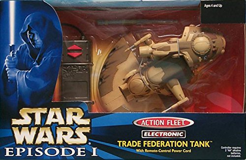 -. Feature : Includes Trade Federation Tank / Firing Blaster Cannon / Rotating Turret / Press Button to move Tank forward and fire Blaster Cannon / Press Button to move Tank backward