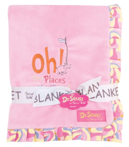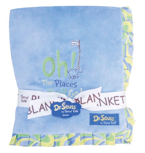 -. Feature : Blanket measures 30" x 40" / Swirl P.R.Int ruffle trim / Soft blue velour / Oh! the places you'll go! embroidery / Coordinates with Dr Seuss blue oh! the places you'll go! collection