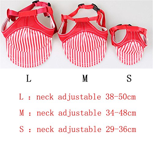 -. Feature : Size:S:Suitable for 29-36cm/11.42"-14.17"in neck,E.g Poodle,Small dogs 15 pounds or less etc.; / Size:M: Suitable for 34-48cm/13.38"-18.89"in neck,E.g Border Collie,Siberian husky,Samoyed etc.; / Size:L: Suitable for 38-50cm/14.96"-19.69"in neck,E.g Golden Retriever,Alaskan Malamute etc.; / With an adjustable neck strap for easy on/off, you don't need to worry about the too tight or too loose situations.Big ear holes make your pet feel comfortable and relaxed. / Material: Cotton Blend, mesh cloth;Package Included:1 x Dog Hat