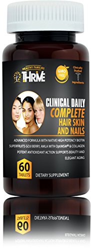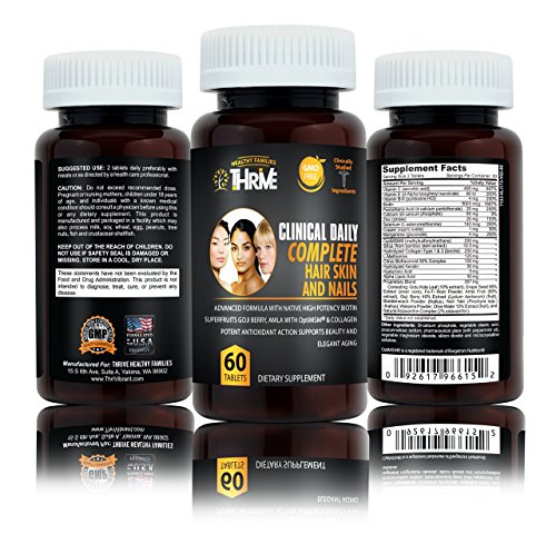 CLINICAL DAILY COMPLETE Hair, Skin & Nails. All natural, herbal supplement with clinically studied ingredients for glowing hair and skin, and to support brittle nails. True blue beauty supplement.