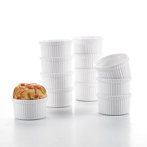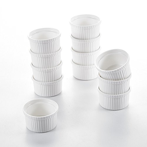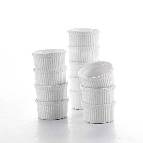 Malacasa, Series Ramekin, 12-Piece 2.75" (7cm) Porcelain Ramekins Ivory White China Souffle Ceramic Cream White Baking Dishes(Set of 12) Ramekins for baking and serving appetizers, casseroles, entrees, desserts and single-serving recipes Made from fine-quality porcelain; microwave safe for easy reheating and serving Perfect for cheese or egg dishes, souffles, baked cocotte, baked mac and cheese, quiche or creme brulee, and any crisp, cobbler or crumble dessert Serve garnish, condiments, and seasonings alongside entrees, even dipping sauce, drawn butter, olives, taco toppings, and more Durable, versatile, microwave, oven, broiler, freezer and dishwasher safe 2.75" ramekins dishesL*W*H: 7*7*4cm Weight: 66g Volume: 100ml 0 |