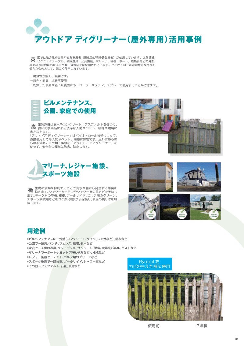 (There is an effect also against mildewproof moss etc) ○ Sterilization to garden and plants: dilute by 20 times.