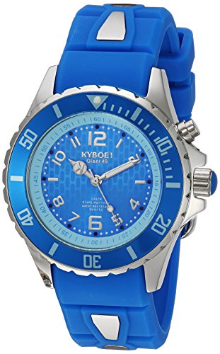 The KYBOE! Silver Sapphire is the bright blue accessory you've been waiting for. It's band, bezel and dial all feature the same striking shade of blue, and are complimented by a silver case and accents. The Silver Sapphire is part of the overall Power Collection - Silver Series, an impressive collection of silver-colored stainless steel watches with color-coordinating bands, bezels and dials. The Silver Sapphire features Quartz Movement, mineral glass, screw down crown, LED light and luminous hands and numbers. It is water resistant up to 100 meters (10 ATM) and features a comfortable silicone band with stainless steel buckle closure.Feature