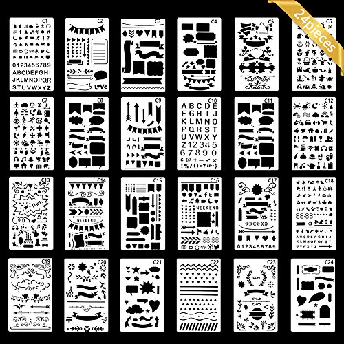 Bullet Journal Stencil, Gookit 24 Packs Plastic Journal Stencil Painting Shapes Letter Journaling Set DIY Drawing Template Stencil 4x7 Inch