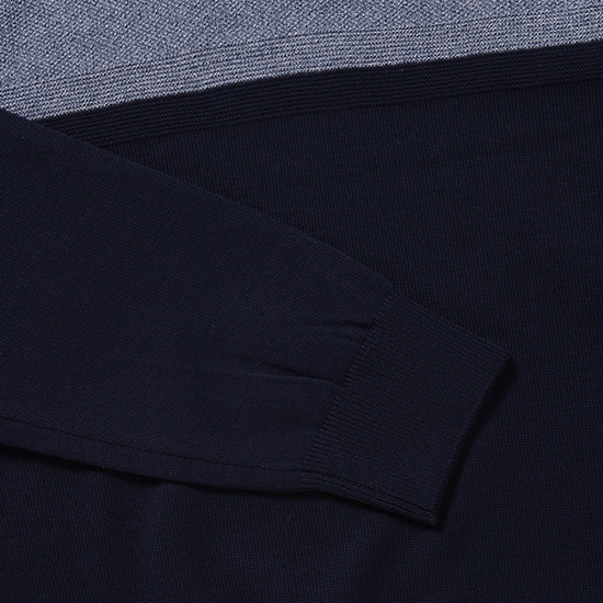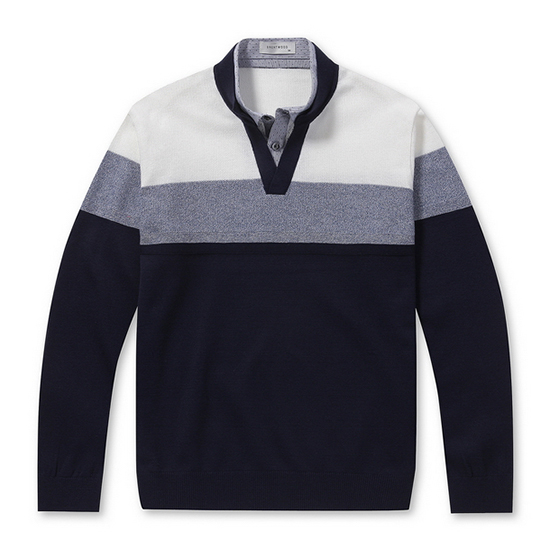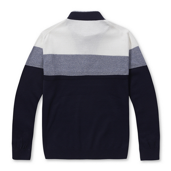- 톤온톤 블럭 디자인을 적용한 남성 니트.