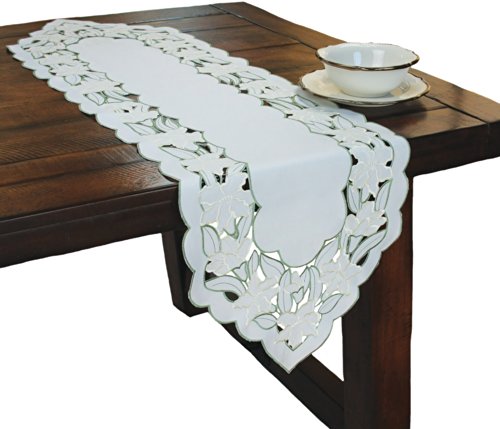 - Fresh and pretty flowers with embroidered trim in a green embroidered leaf cutwork