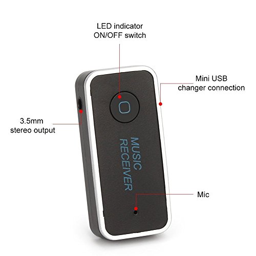 -. Feature : Multipoint Connection and Hard Free:The Bluetooth Receiver can connect two blue tooth devices simultaneously, and switch phone to play music. Music and calling switch conveniently makes your driving safely. It will provide you super clear conversation effect with hand-free function of answering/Ending/Rejecting/Redialing a call, Converts Your Car Sound System bluetooth enabled to play your music from your smartphone to your car music system wirelesss / Rayway BT510 Bluetooth Receiver supports bluetooth v4.1 with 3.5mm stereo inlet socket. It plugs into your AUX port in your car to stream the audio from your mobile to your car wireless, Universal compatibility: Works with iPhone, iPod, iPad, Tablets, Other Smartphone, most speakers, TV, and radio, easily plugs into any powered PC speakers, Car & Home Stereo Sound System and A/V receivers using RCA or 3.5 mm jacks. / Mini Design and High Quality Sound: Bluetooth Version 4.1. Compact, mini lightweight for portable use and its high quality sound conversion effect makes you enjoy a great listening experience. Automatically connect: The Bluetooth Receiver will connect to the last connected phone / It features sleep mode to save the power. In addition, it supports voice prompt to tell you if it is on, connected. It comes with USB and Micro USB charging cable to charge the receiver. A full charge provides up to 10 hours of play time / Setup is simple and easy. Pressing BT510 Bluetooth Receiver for 5 seconds to enter into the pairing mode. Your bluetooth devices find the receiver automatically. Simply pressing connect to pair the receiver