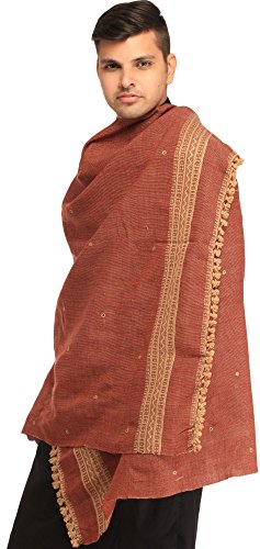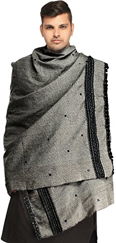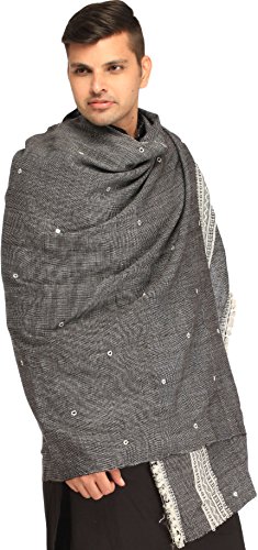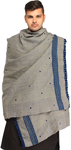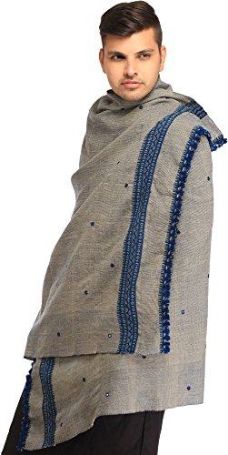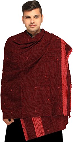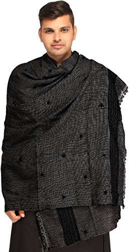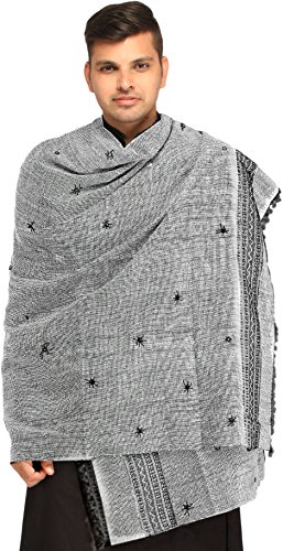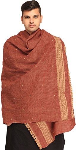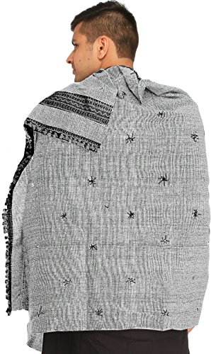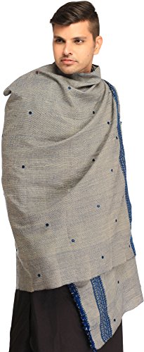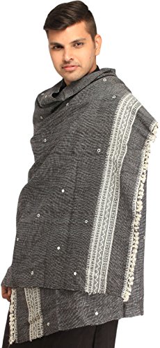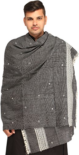 | Exotic India Men's Shawl from Kutch with Woven Border a |