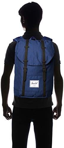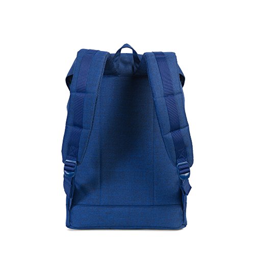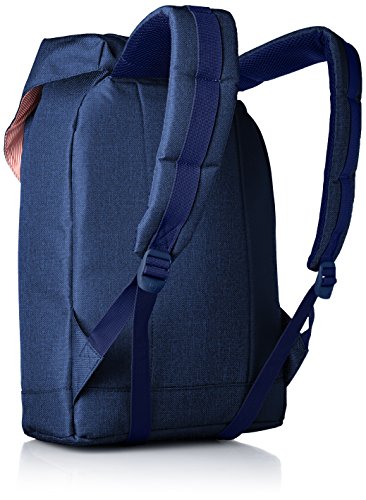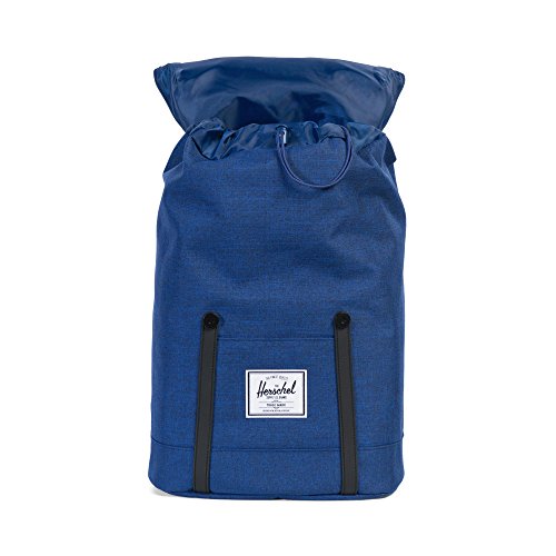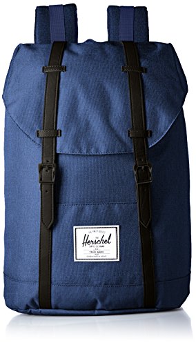 Product Description A nylon Herschel Supply Co. backpack with faux-leather trim. The top-loading main compartment has a fleece-lined laptop sleeve, small side pocket, and a pass-through port for headphone wires. The opening cinches with a drawcord and is covered by a flap with magnetic snaps. External slide pocket on the front. Padded shoulder straps and back. Lined. 0