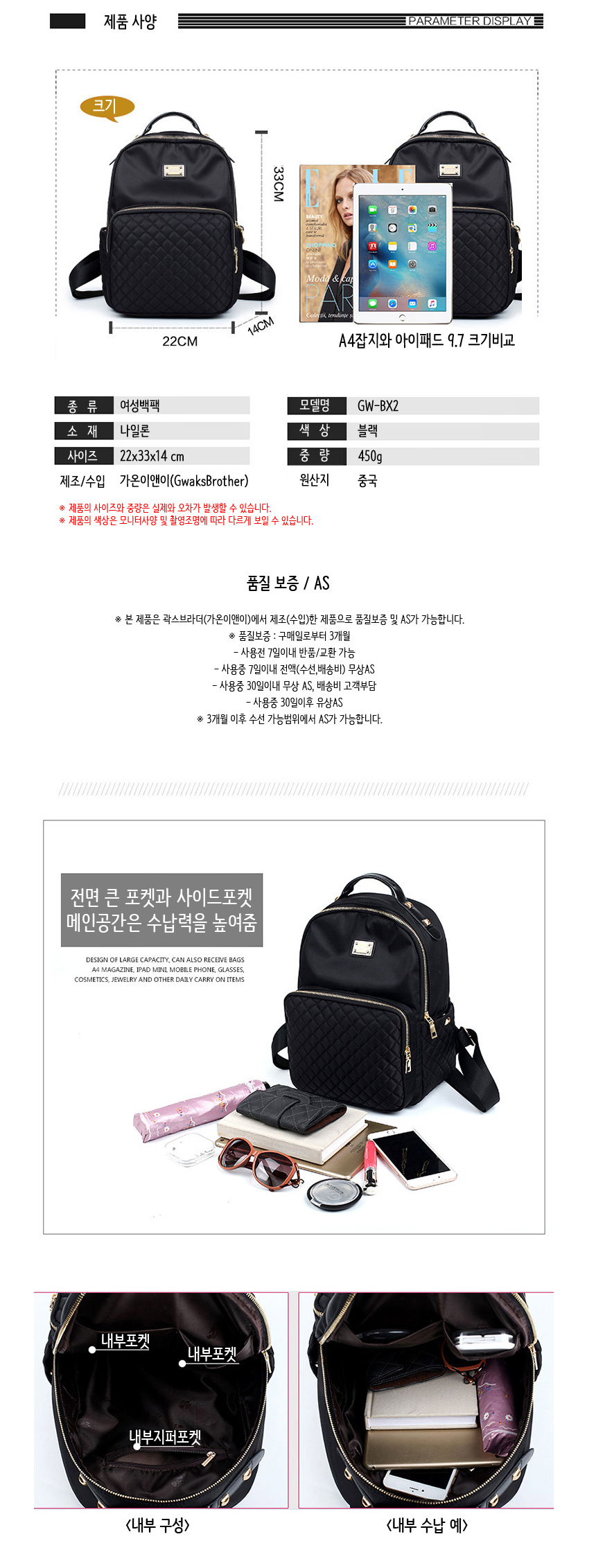 Black Casual Backpack GW-BX2 Lightweight, easy to store, nylon bag suit women