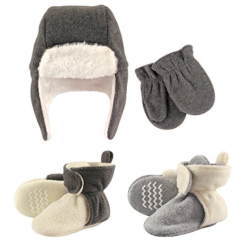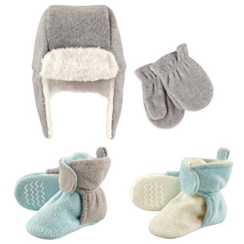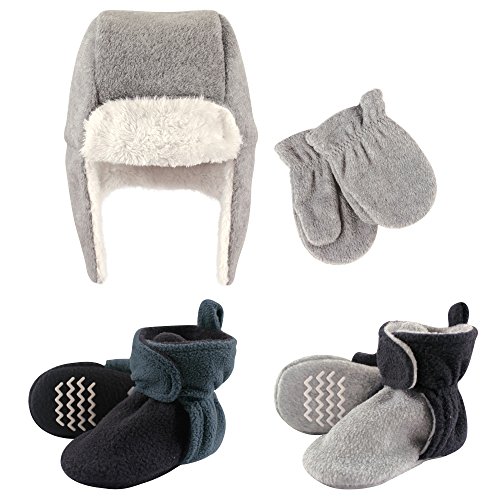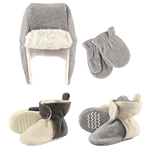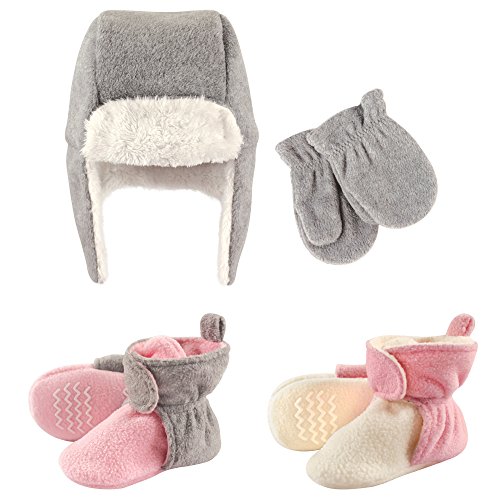 Binding : Apparel Product Description Hudson Baby winter hat, mittens and scooties set is the cutest way to keep your baby warm and cozy in the colder months. Made of super soft fabric, your baby won't want to pull this one off! This cozy hat is important for protecting your baby's skin from wind, cold, ice and snow. Little scooties can be worn with or without socks and have hook and loop closure which can be adjusted as baby gets older. To help protect your little one from falls, we've added non-skid grippers on the bottom of the scooties! This perfect set is adorable and fun when out and about during the cold months! 0