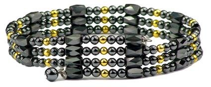 -. Title : Goldtone Beads Wrap Around Simulated Hematite - Magnetic Therapy Bracelet/Anklet (WA-G1)
