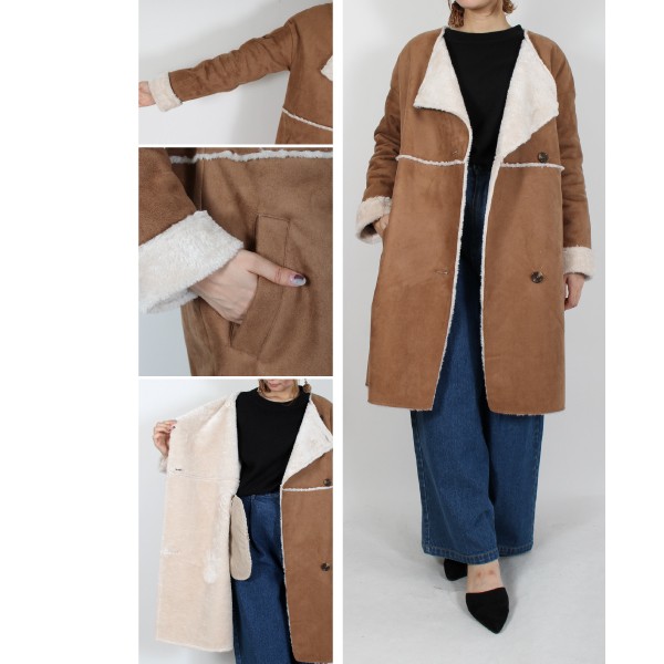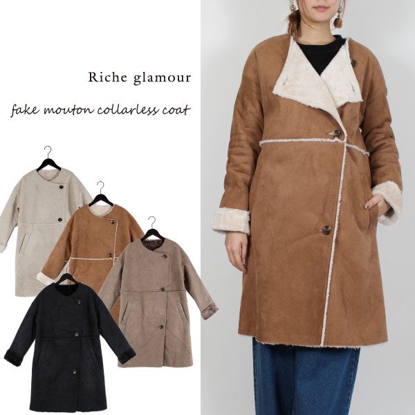フェイクムートンのノーカラーコート☆
