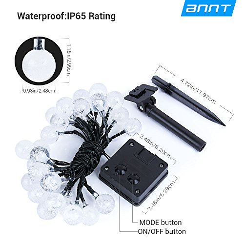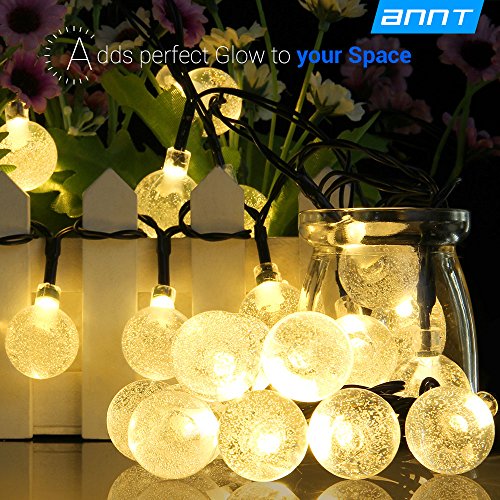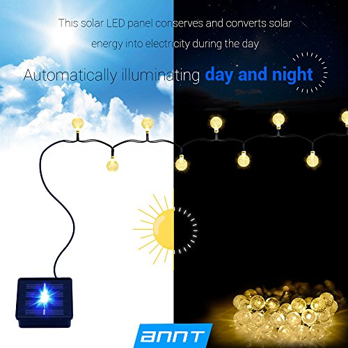 ANNT LED Solar Outdoor Light String 20ft Starry Crystal Ball Lights Waterproof 30 LEDs Globe Light Rope Yard Lights for Bedroom, Patio, Yard, Landscape, Party Decorations (Warm white)