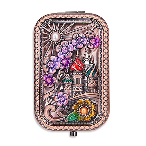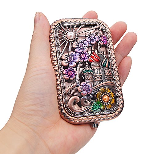 Ivenf Rose Golden Castle & Flower Square Vintage Compact Purse Mirror, Christmas Gift