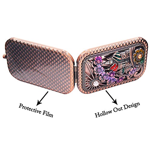 Great choice for compact makeup mirror which fully displays uniqueness and taste. Fit in with retro trends of makeups, apparels & bags.