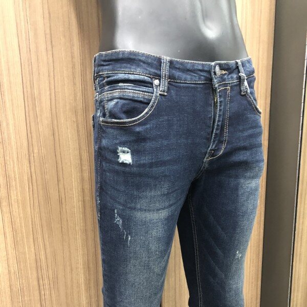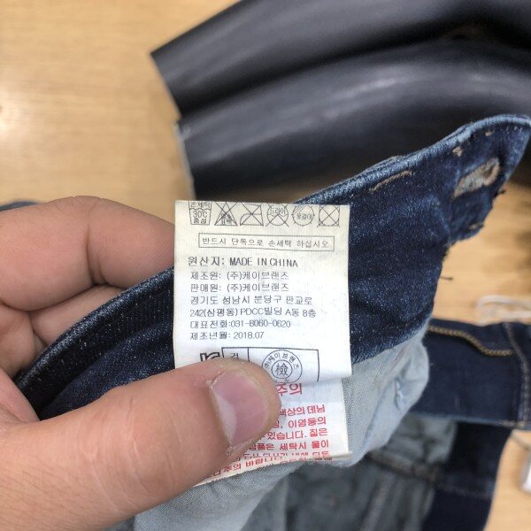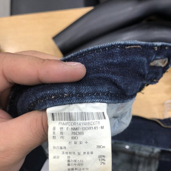 비교적 심플한 워싱의 기본 D톤 컬러라이더로 뒤허리 안쪽에 밴딩처리가 되어있어 허리착용감이 편한 아이템