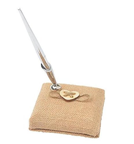 Gartner Studios XO Pen and Holder, Medium Point, 1.0 mm, Silver Barrel/Burlap Holder, Black Ink