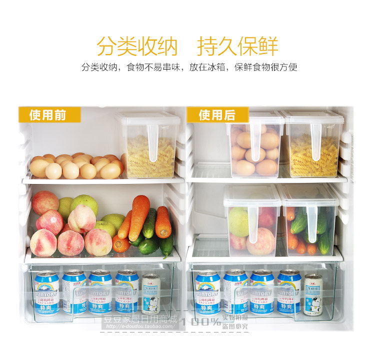 Japanese style simple, transparent cover, drawer design, items are also very easy to pick up, used in the refrigerator compartment, and make full use of space, easy to use, effective classification; daily put on the desktop debris is also easy to use.