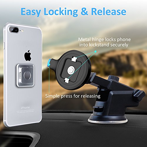 Secure and Sturdy: Metal hinge locks your phone into mount kickstand securely, no wobbling or slippage; Keep your device handy, provide hands-free phone access and give you a safe driving.