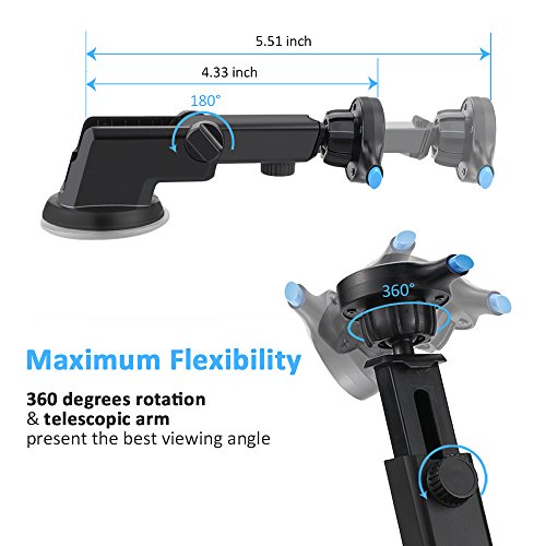 360 Degrees Rotatable & Telescopic Arm: Fully Adjustable, give you the ultimate flexibility in viewing your cell phone from any angle and see navigation, calls, music or time with ease during driving.