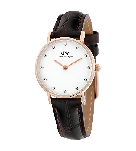 Brown crocodile leather watch with rose gold tone stainless steel case and scratch resistant mineral crystalSwarovski crystal hour markersQuartz MovementCase Diameter: 26mmWater Resistant To 99 Feet