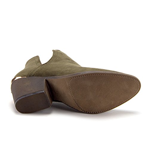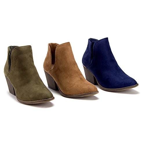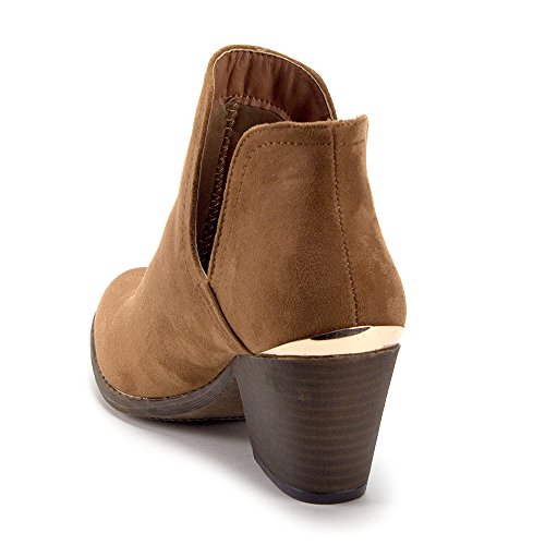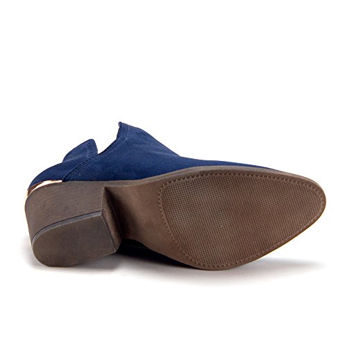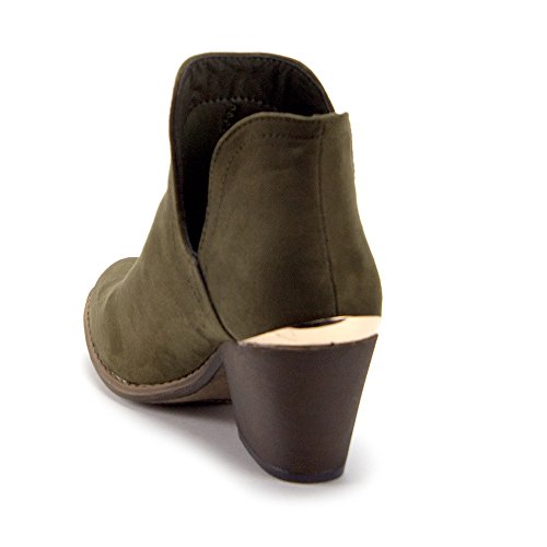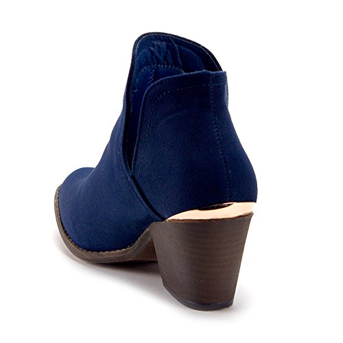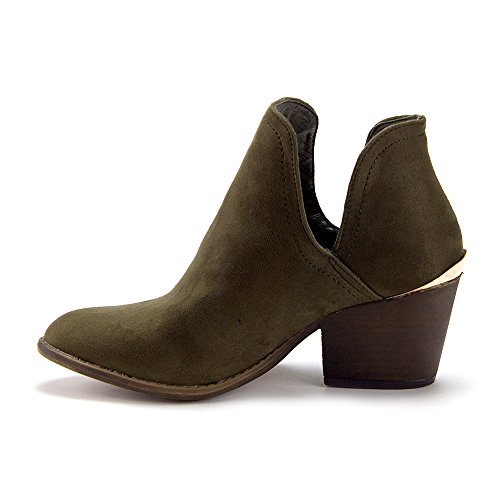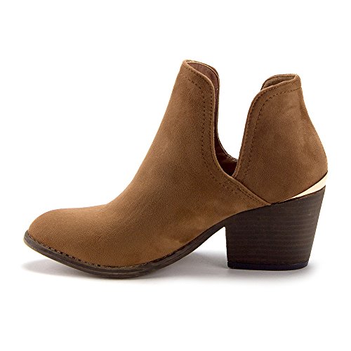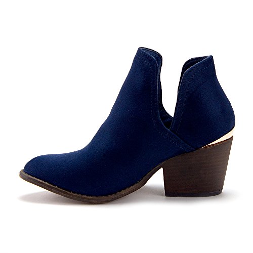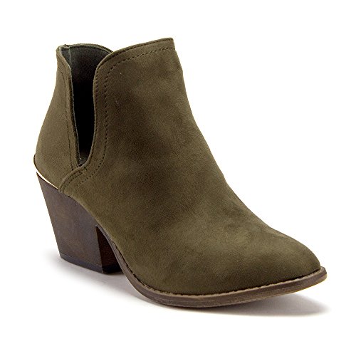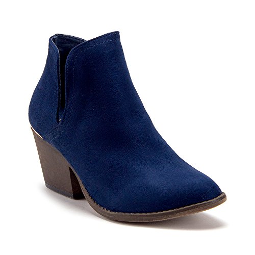 Product Description A daring take on the season's Western Trend: side slit cut-outs in this split shaft faux suede booties lifted by a stacked block heel. Dress them up or down, they are a sure go-to pair this season. Easy slip on, rounded toe detailed by a metal plate around block heel. 0