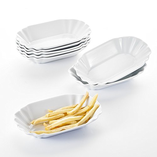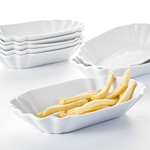 Malacasa, Series Regular, 8-Piece 7.75" French Fries Dishes China Ceramic Cream White Porcelain Breakfast Tray Dessert Plate Cake Potato Chip Plate(19.5×12×3.5cm)(Set of 8)
