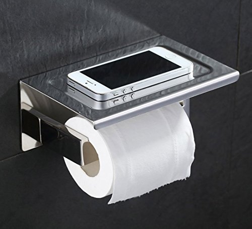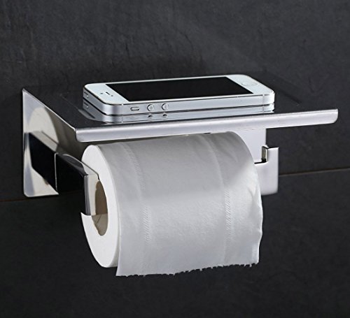 XVL Toilet tissue paper holder with mobile phone storage shelf, Nickel Brushed, G318A