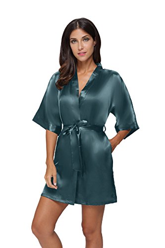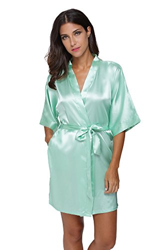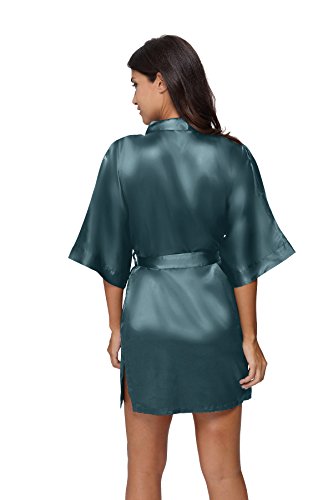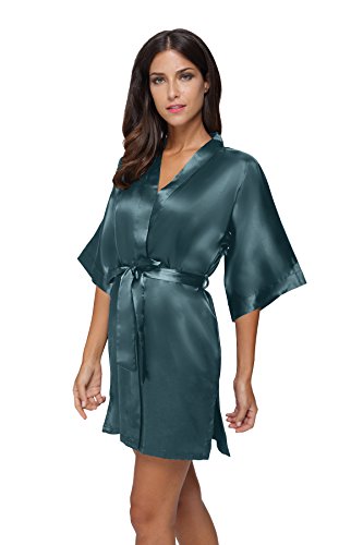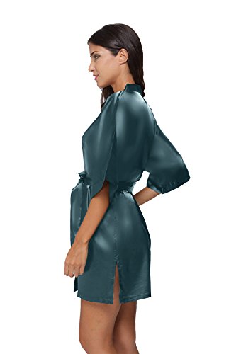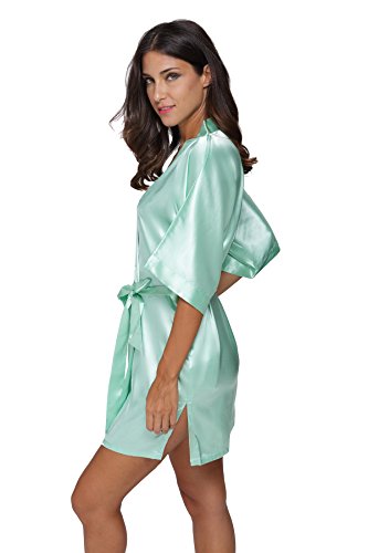 The Bund womens Pure Colour Short Kimono Robes with Oblique V-Neck Seagreen Medium
