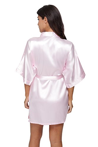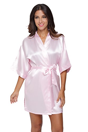 The Bund womens Pure Colour Short Kimono Robes with Oblique V-Neck Lightpink Small