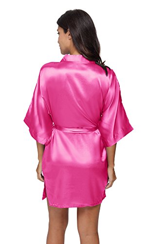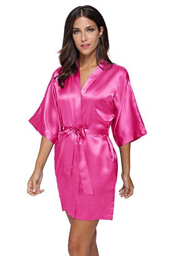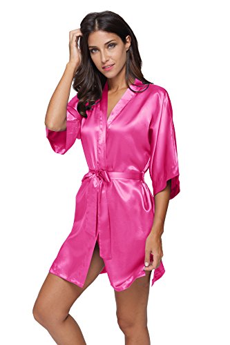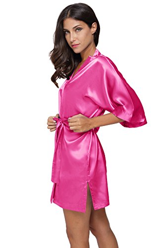 The Bund womens Pure Colour Short Kimono Robes with Oblique V-Neck deeppink Large
