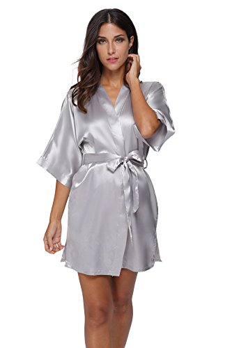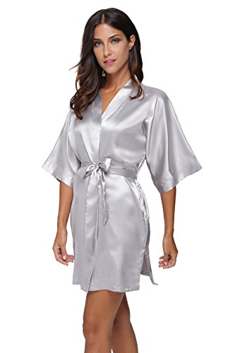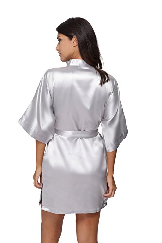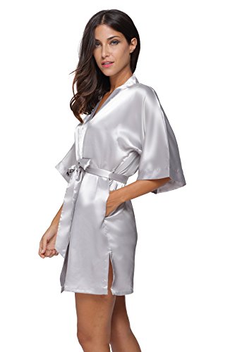The Bund womens Pure Colour Short Kimono Robes with Oblique V-Neck Grey Medium