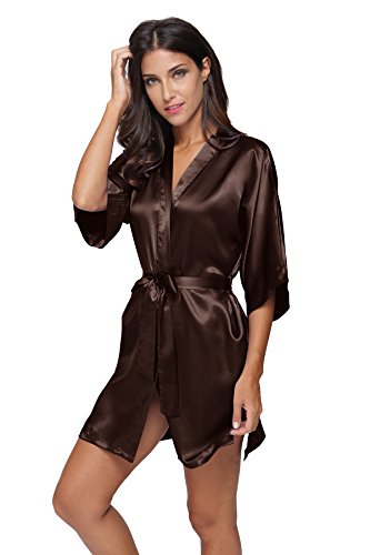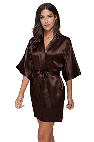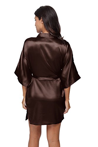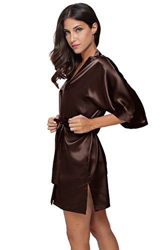 The Bund Women's Pure Colour Short Kimono Robes with Oblique V-Neck, XXX-Large, Coffe