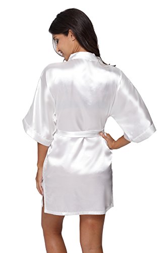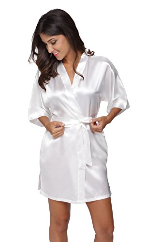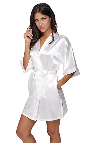 The Bund womens Pure Colour Short Kimono Robes with Oblique V-Neck White X-Large