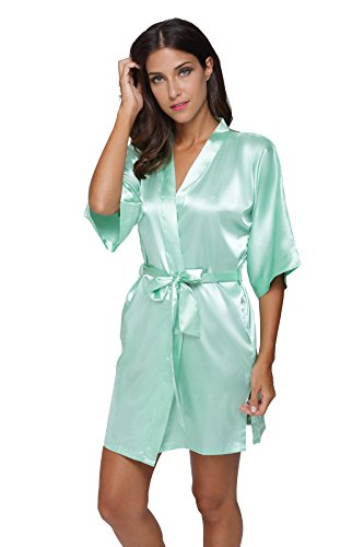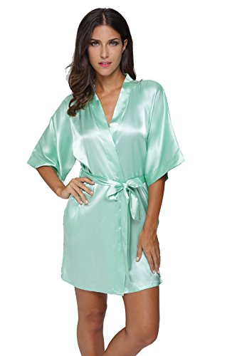 The Bund womens Pure Colour Short Kimono Robes with Oblique V-Neck Seagreen Small