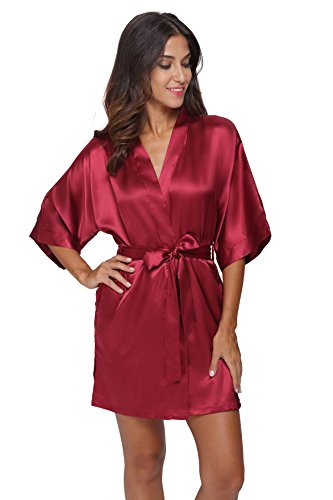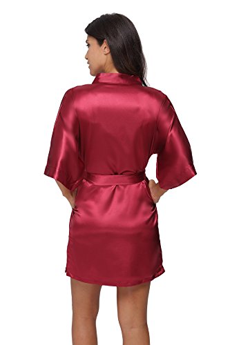 The Bund Women's Pure Colour Short Kimono Robes with Oblique V-Neck, Medium, Bordeaux