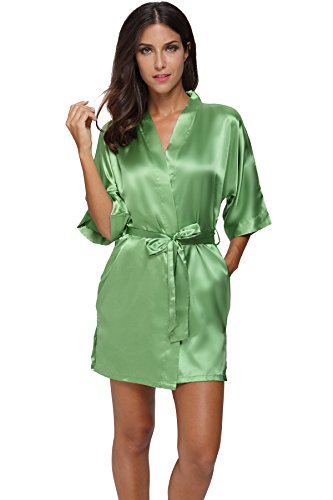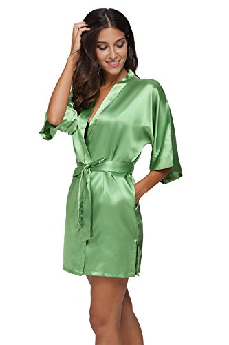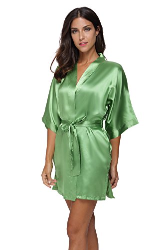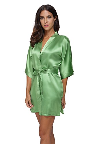 The Bund womens Pure Colour Short Kimono Robes with Oblique V-Neck Green Small