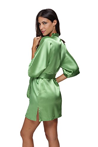 The Bund womens Pure Colour Short Kimono Robes with Oblique V-Neck Green X-Large