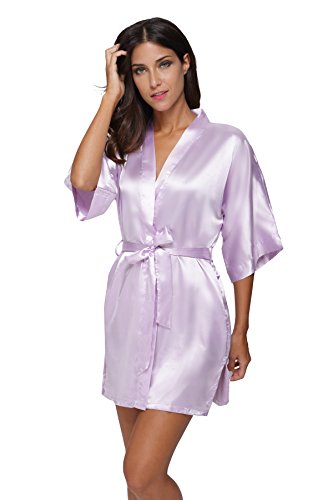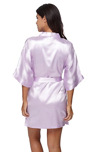 The Bund Women's Pure Colour Short Kimono Robes with Oblique V-Neck, Medium, Light Purple
